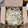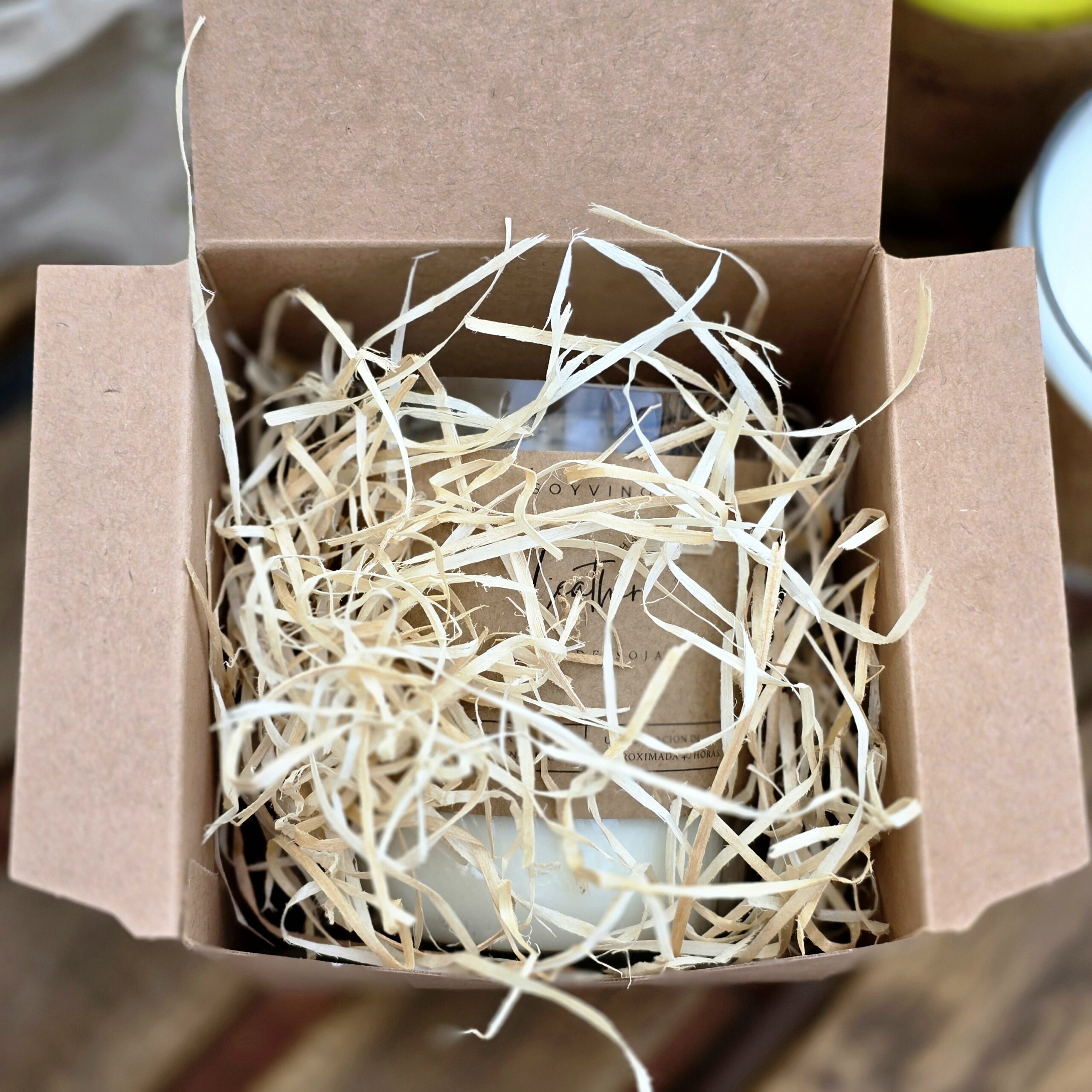 Embalamos nuestras velas en cajas de cartón, las cuales rellenamos con lana ecológica, las velas van aseguradas con papel ecológico y utilizamos cinta de papel. No generamos residuos innecesarios. A veces usamos papel de aluminio, pero solo el que recibimos en un envío :)