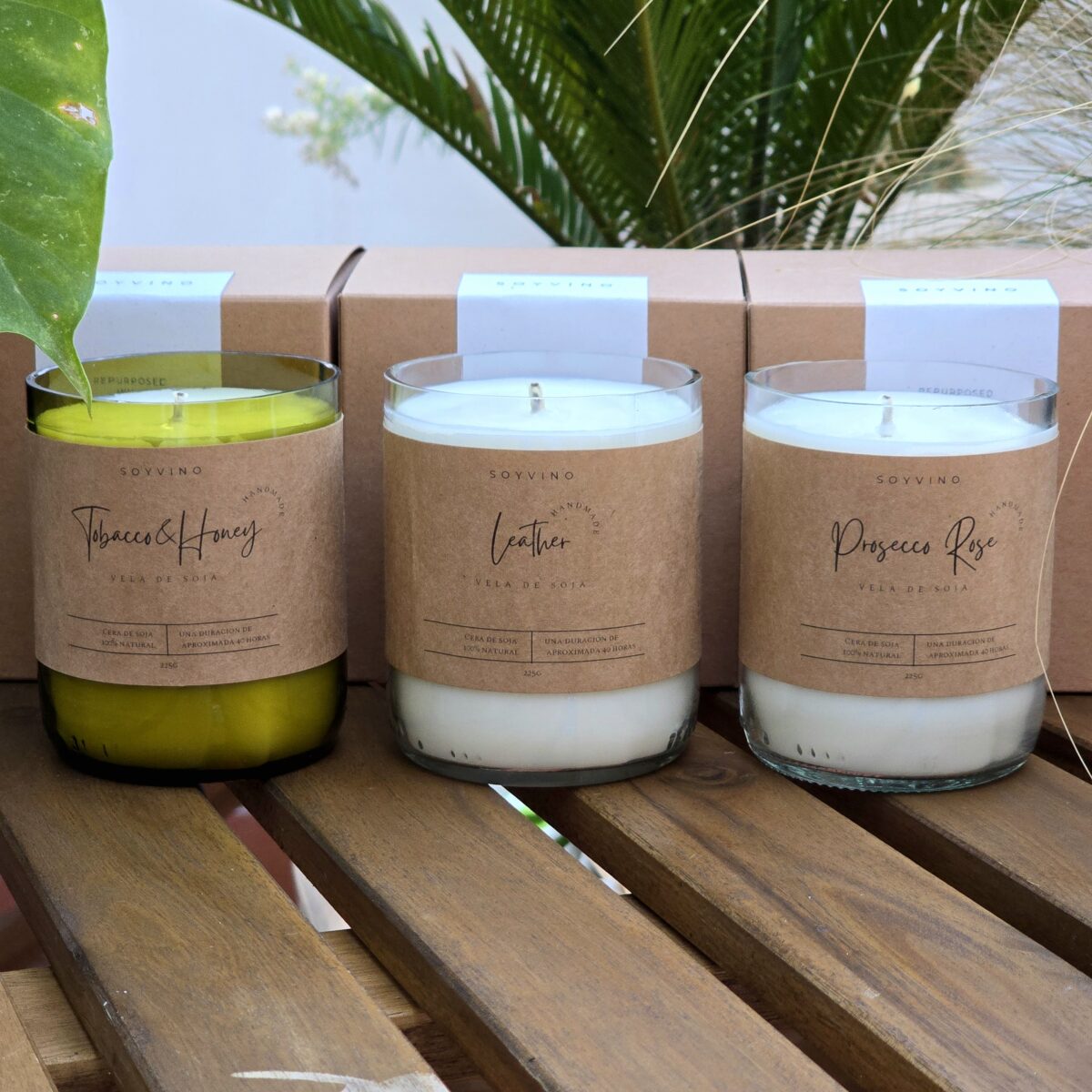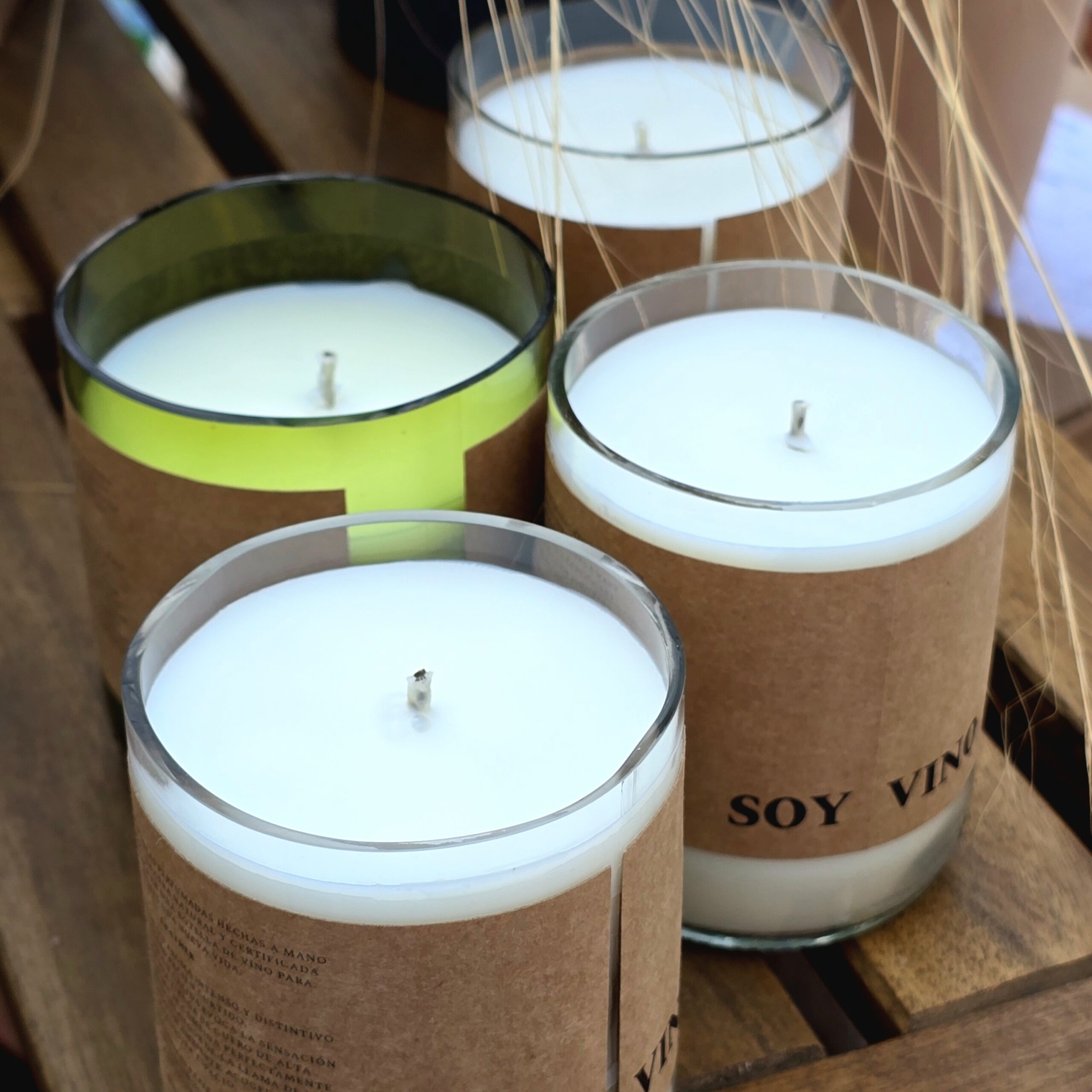 Soyvino son velas perfumadas hechas a mano utilizando una cera natural y certificada que se aplica en una botella de vino para darles una nueva vida.