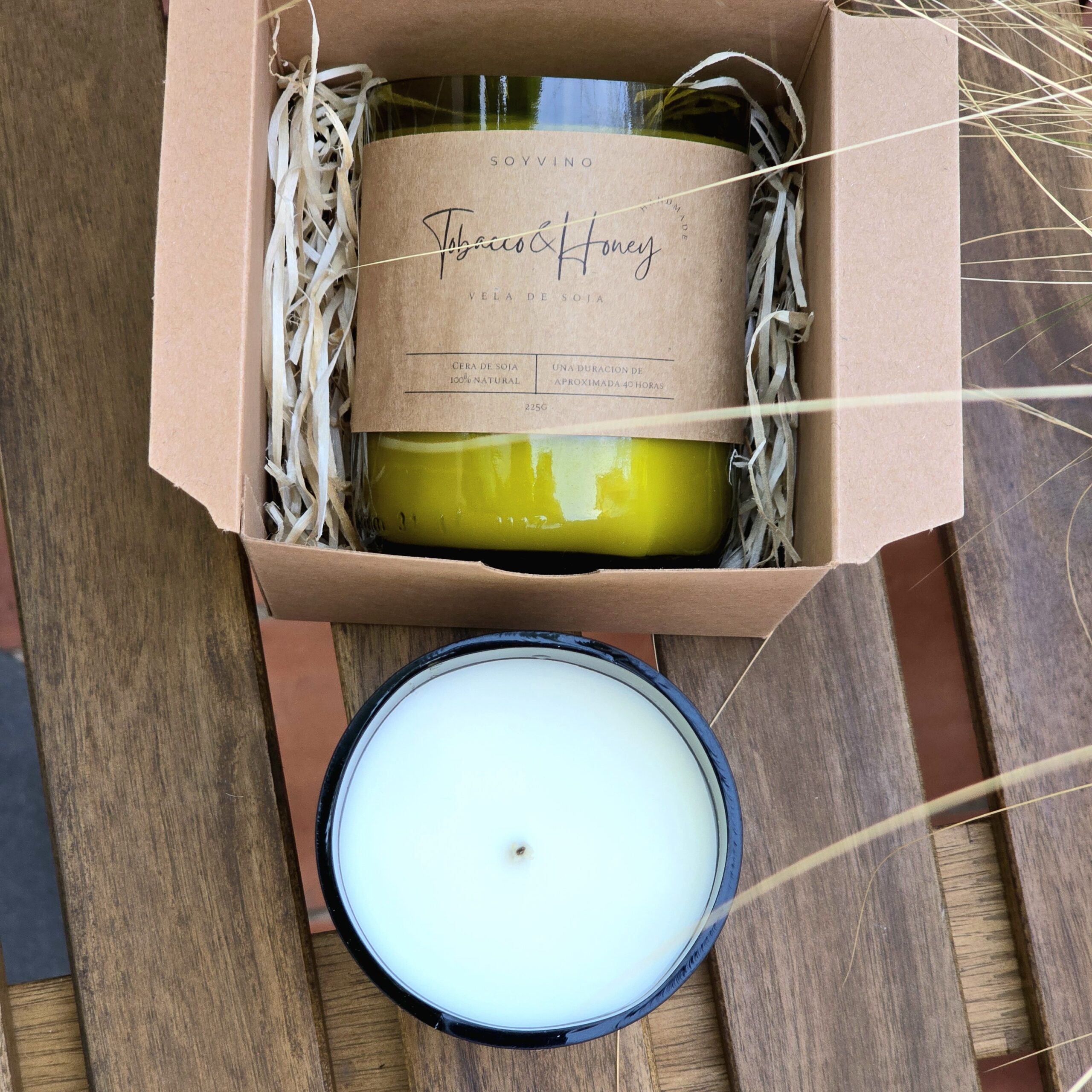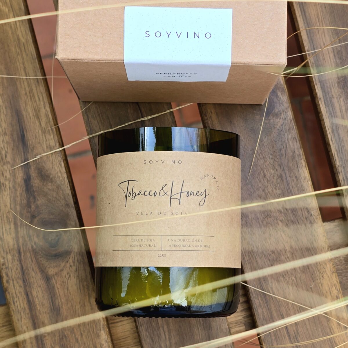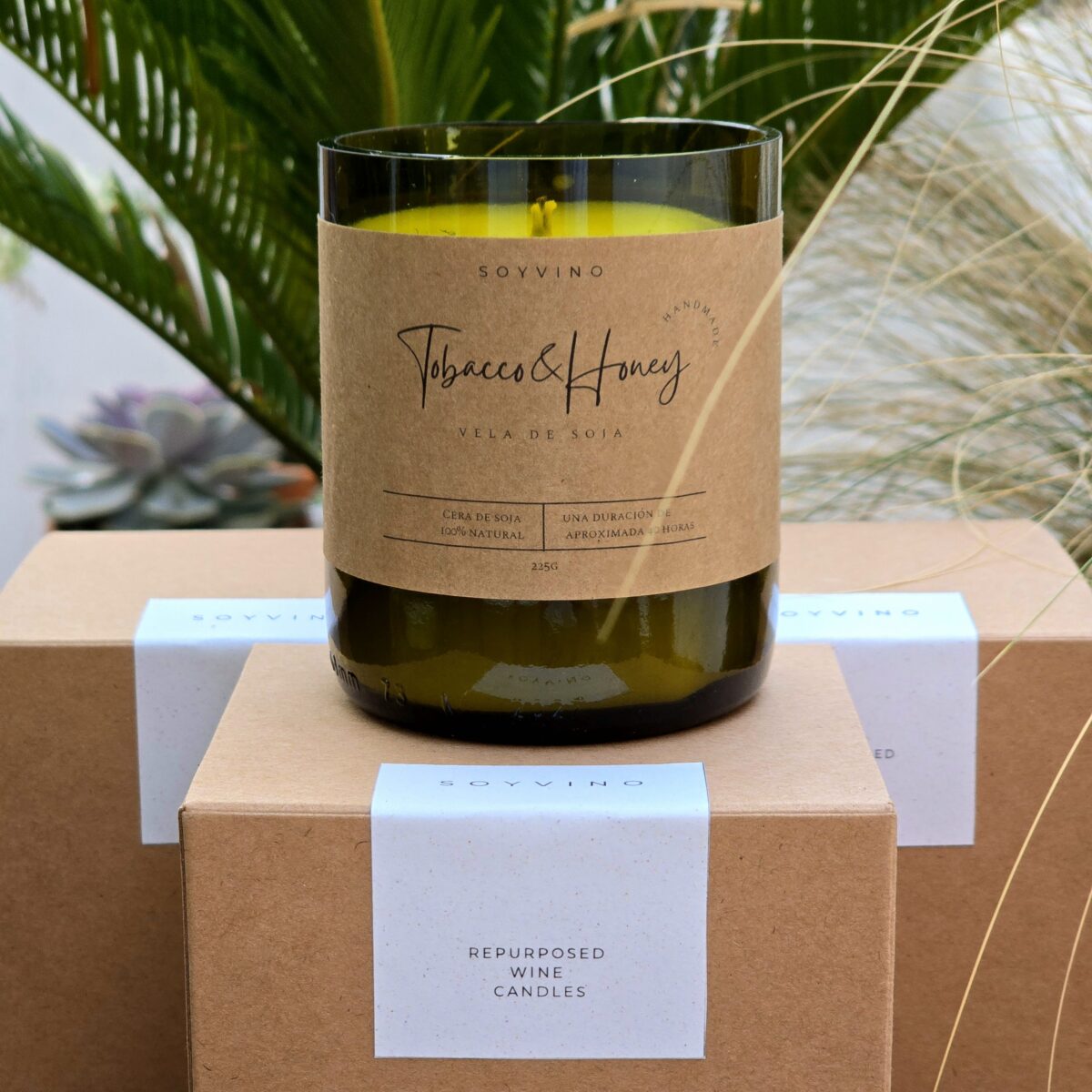 Soyvino son velas perfumadas hechas a mano utilizando una cera natural y certificada que se aplica en una botella de vino para darles una nueva vida.